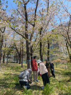 樹木医と一緒に千里南公園のサクラの観察・樹勢回復の処置など実践的に行います。